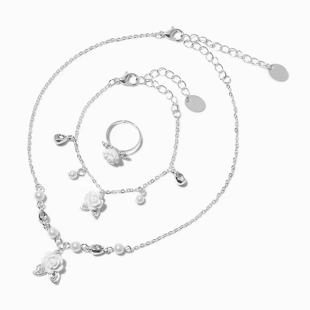 Claire's Club Pearl Rose Silver-tone Jewelry Set - 3 Pack