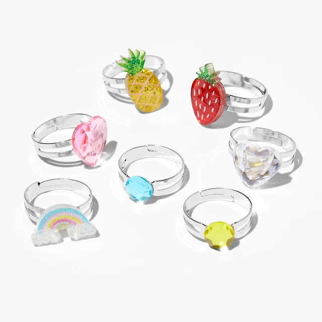 Ardene 7-Pack Smiley Face & Heart Rings in Silver | Size