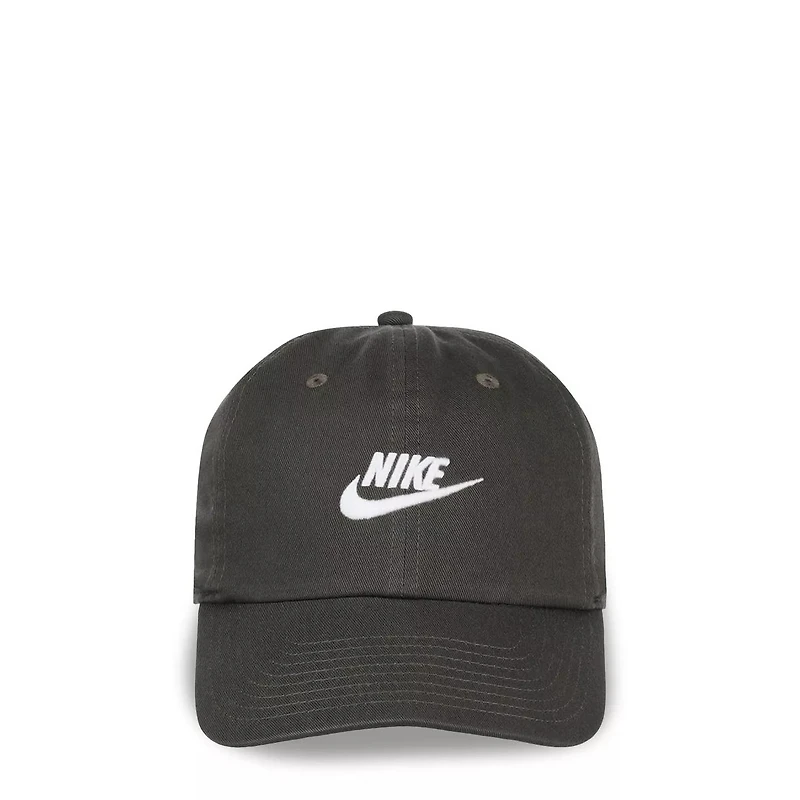 The Nike Club Futura Wash olive/white cap is perfect for those warm sunny days. Made with a soft wash woven cotton shell for easy comfort, this sporty hat has a relaxed fit and an adjustable fabric strap with snap buckle closure for a comfy customized fit. Features include a low crown, slightly curved bill, and a six-panel construction with embroidered ventilation eyelets. Nike Swoosh logo detail at front and on metal tri-glide adds an iconic sporty vibe.