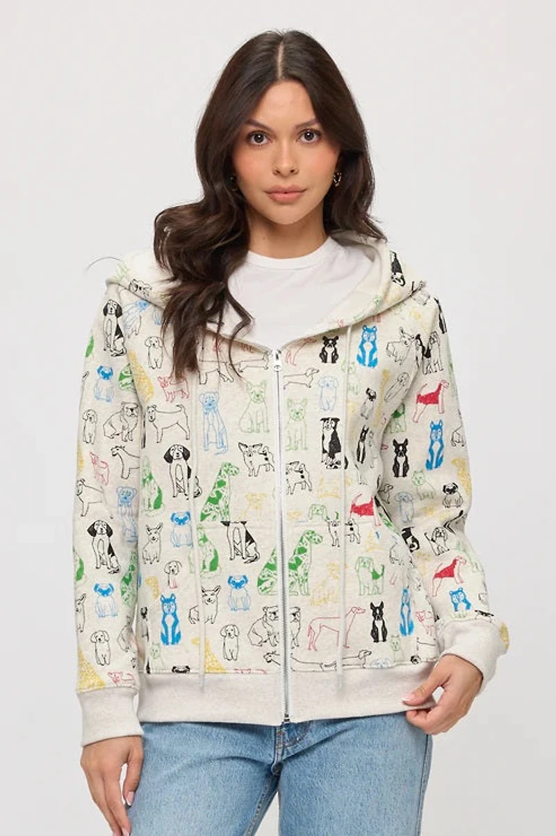 Colorful Graphic Dogs Zip Up Hoodie