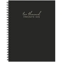 A Calendar Club exclusive! This (trilingual) contemporary basic black 6.5" x 8.5" softcover weekly planner combines fashion with fun, functional features that are ideal for laying out the year ahead. In addition to monthly snapshots and two-page weekly spreads that provide ample space for detailed planning, there are also sections for weekly shopping lists, weeks priorities, daily habit tracker and space to record things your grateful for. This is a perfect inspirational gift that is the ideal size for school, office, handbag or backpack. This planner includes a spiral binding, monthly color-coded faux tabs which make accessing information a breeze. Includes 300 stickers to dress up special days like birthdays and other upcoming events on your social calendar. Additional features include weekly checklists, a priority tracker, along with additional notes pages and space for passwords and contacts in the back. Protected by a durable, plastic-free cover, this planner also includes a handy storage pocket offering a secure space for papers, receipts, and other important items. Bonus pages include 2 years year-at-a-glance view (2025 and 2026) for long term planning. Also includes moon phases (CST), standard U.S. and international holidays. Date Range January through December. Willow Creek Press is commitment to eco-friendly efforts to make our products more sustainable, our planners are printed with soy-based inks on high-quality paper.Product Information:Dimensions (closed): 8.5"H x 6.75"W x 0.63"DDimensions (open): 8.5"H x 13"W Calendar Format: Weekly and Monthly Spiral with Medium Rectangle GridsCalendar Start Date: January 2026 with Sunday StartTime Span: 12 month plannerCover & Closure: Paper Cover Paper Source: FSCInk Type: Soy-BasedPackaging: Plastic FreeCreative Artist: Additional Features:Contains Canadian Stat HolidayContains Lunar CycleContains Mini Reference Month 12 month preview page of upcoming year More Info: Publisher: Willow Creek Press Item ID: 9781549257759 Language: English Country of Origin: KR