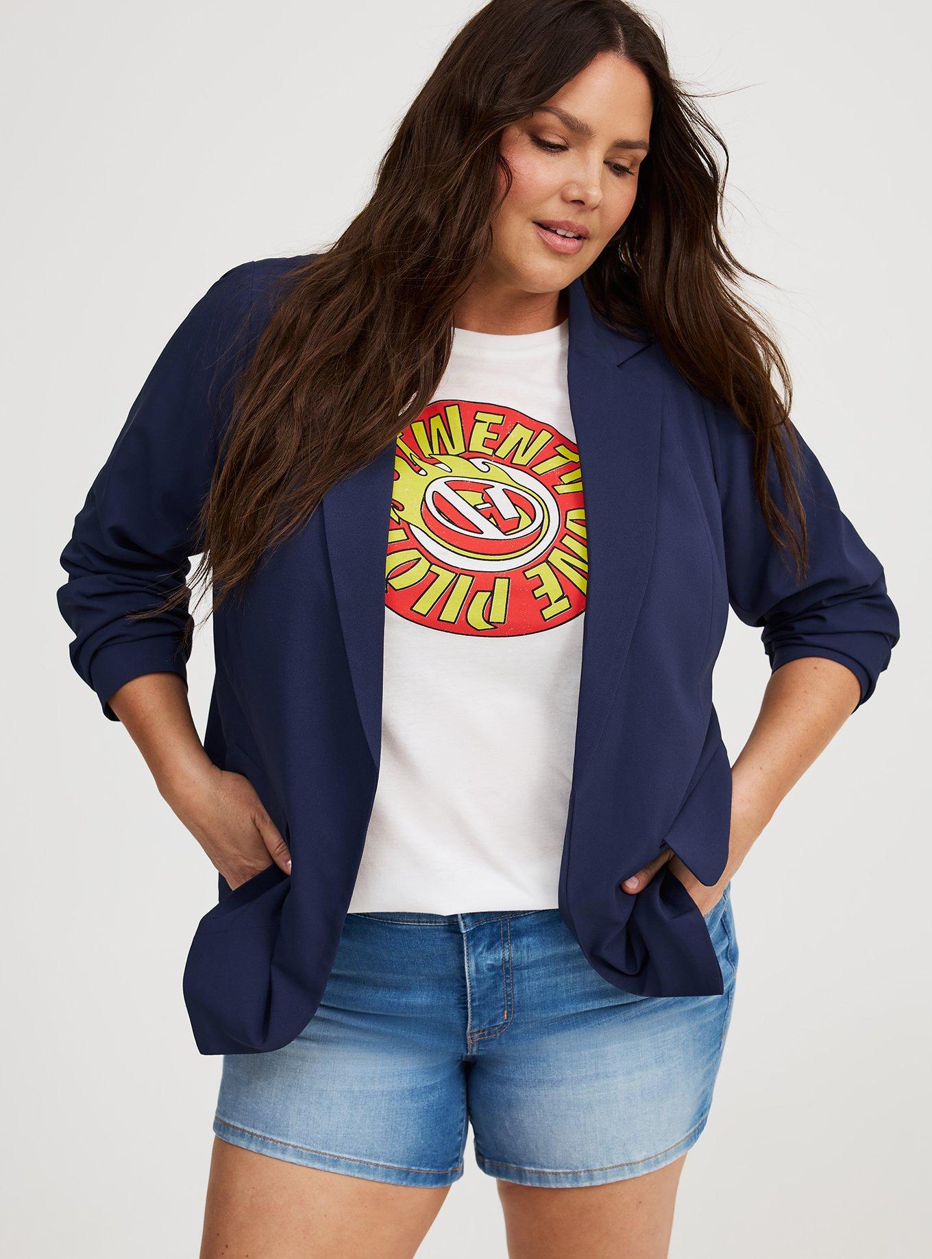 FIT Measures 32'' from shoulder (size 2). Blazer silhouette. MATERIALS + CARE Studio Refined Crepe woven fabric: Say hello to lightweight luxury—perfect stretch, wrinkle resistance and style that suits you just right. Stretch Level: Medium. Wrinkle resistant. 98% polyester, 2% spandex. Machine wash cold. Tumble dry low. Imported. DETAILS Notch collar. Long sleeves. Open front. Front flap pockets.