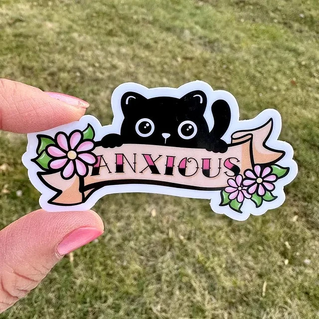 Cute Black Cat Anxious Anxiety Tattoo Style Sticker