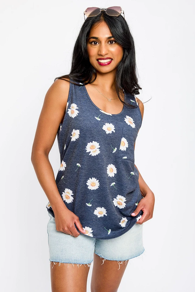 Daisy Print Sleeveless Scoop-Neck French Terry Tank
