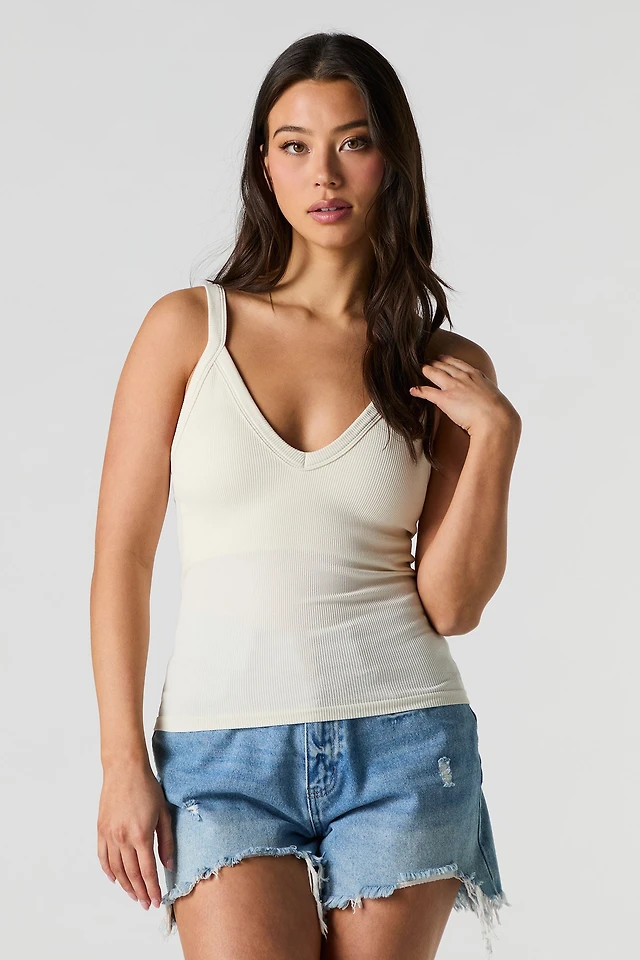 Camisole côtelée sans couture à encolure en V avec bonnets intégrés
