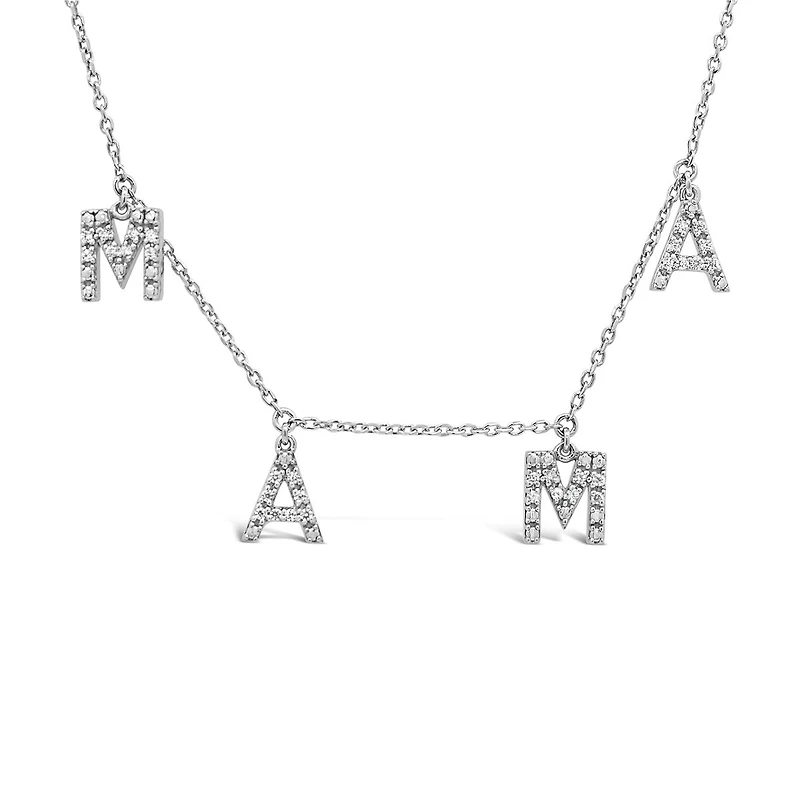 Celebrate the beauty of motherhood with this sterling silver diamond mama necklace. Featuring elegantly crafted letters suspended along a delicate chain and accented with shimmering diamonds, this piece is a heartfelt symbol of love and strength. Perfect for everyday wear or as a meaningful gift.