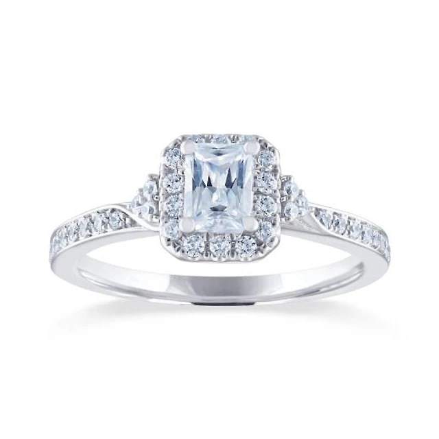 Diamond Revelations 14K White Gold 0.70CTW Halo Emerald Bridal Ring