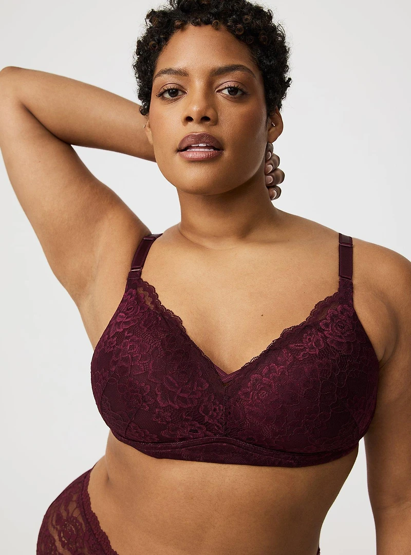 FIT Wireless cups. Push-up padding for lift. Crisscross front design for optimal cleavage and containment. 360° Back Smoothing® sculpts and supports. MATERIALS + CARE Microfiber and lace knit fabric. 86% nylon, 14% spandex. Machine wash cold. Line dry. Imported. DETAILS Front-adjustable straps. Wide side band to keep things smooth. Back hook-and-eye closure. WHY WE LOVE IT The word we keep hearing is ""life-changing""! Freedom from wires but with amazing lift and support...and of course, our incredible, 360° Back Smoothing® technology—it all combines to create a bra so comfortable, you might just forget you're wearing it.