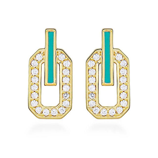 Earrings with Cubic Zirconia and Teal Enamel in Sterling Silver