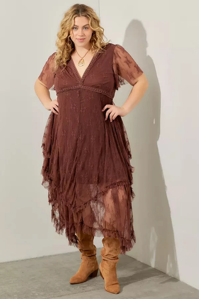 Plus Midi Fit & Flare Witch Print Dress With Lace Hem
