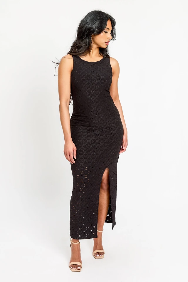 Eyelet Scoop-Neck Bodycon Dress with Shoulder Ties