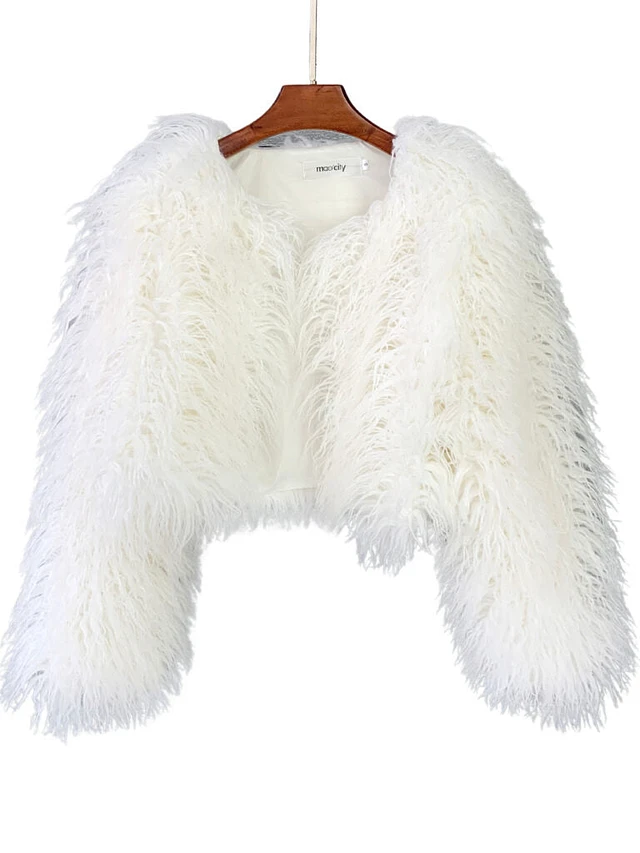 Faux-Fur Zip-Up Cropped Hooded Jacket