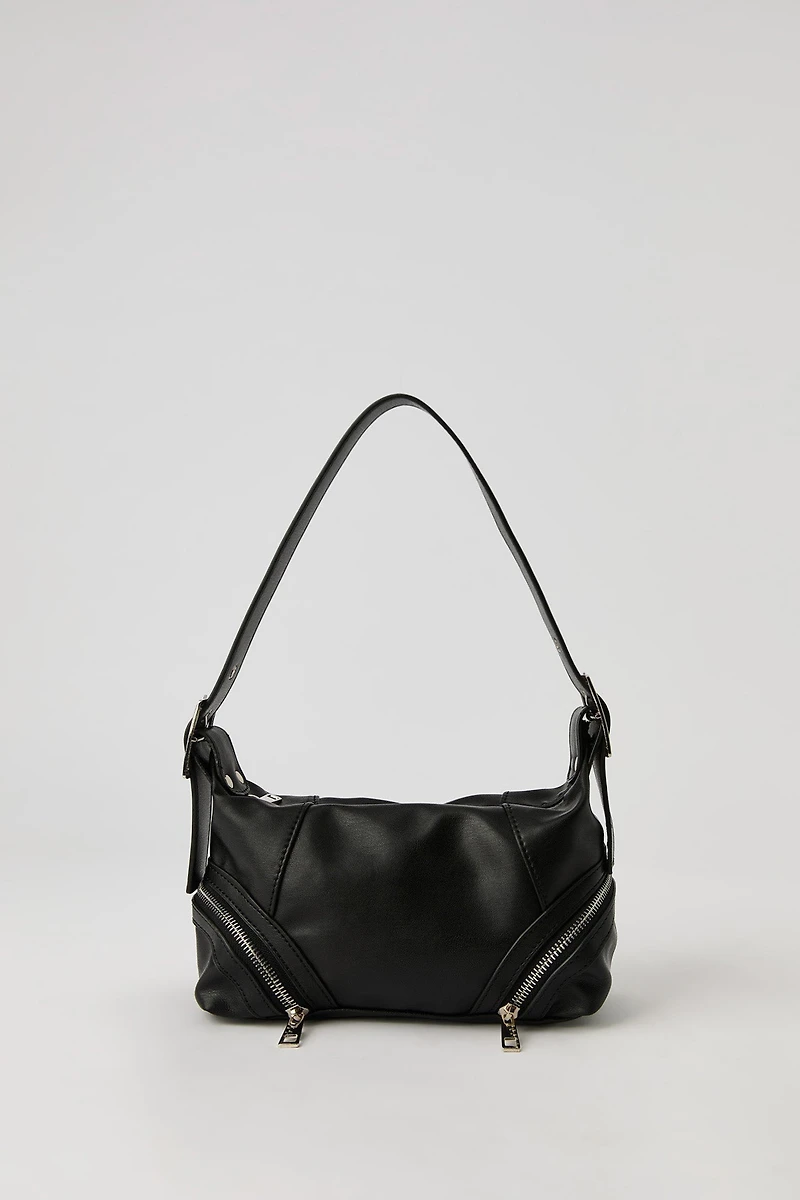 Faux Leather Zipper Detail Shoulder Bag