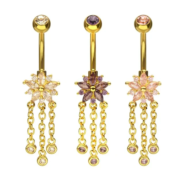 Teardrop Prong 3 Bez Gem Dangle Navel