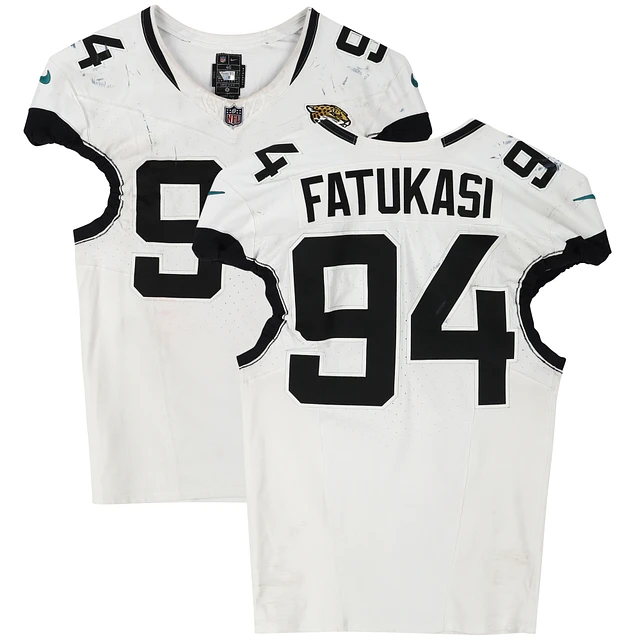 Folorunso Fatukasi Jacksonville Jaguars Game-Used #94 White Jersey vs. Houston Texans on November 26, 2023