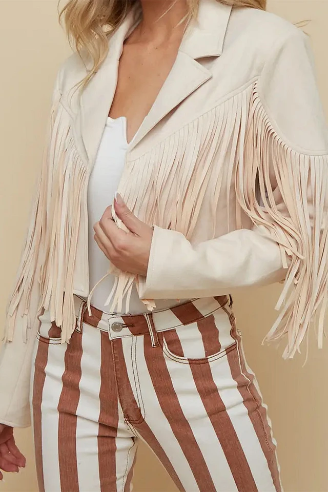 Fringe Tweed Jacket & Emma Embossed Button Pants