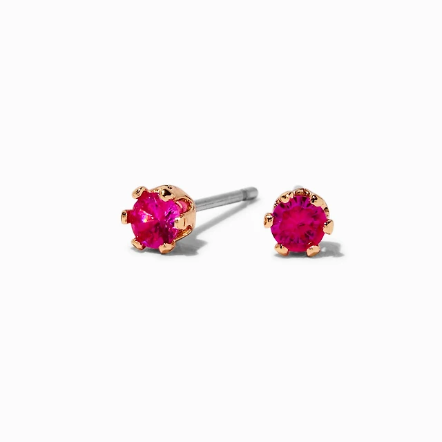 Fuchsia Cubic Zirconia 4mm Round Stud Earrings
