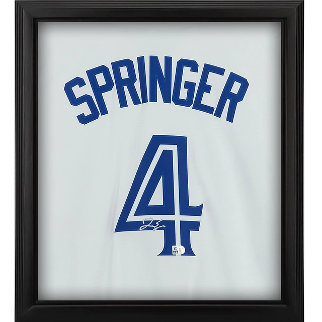 George Springer Toronto Blue Jays Autographed Framed White Nike Replica Jersey Shadowbox