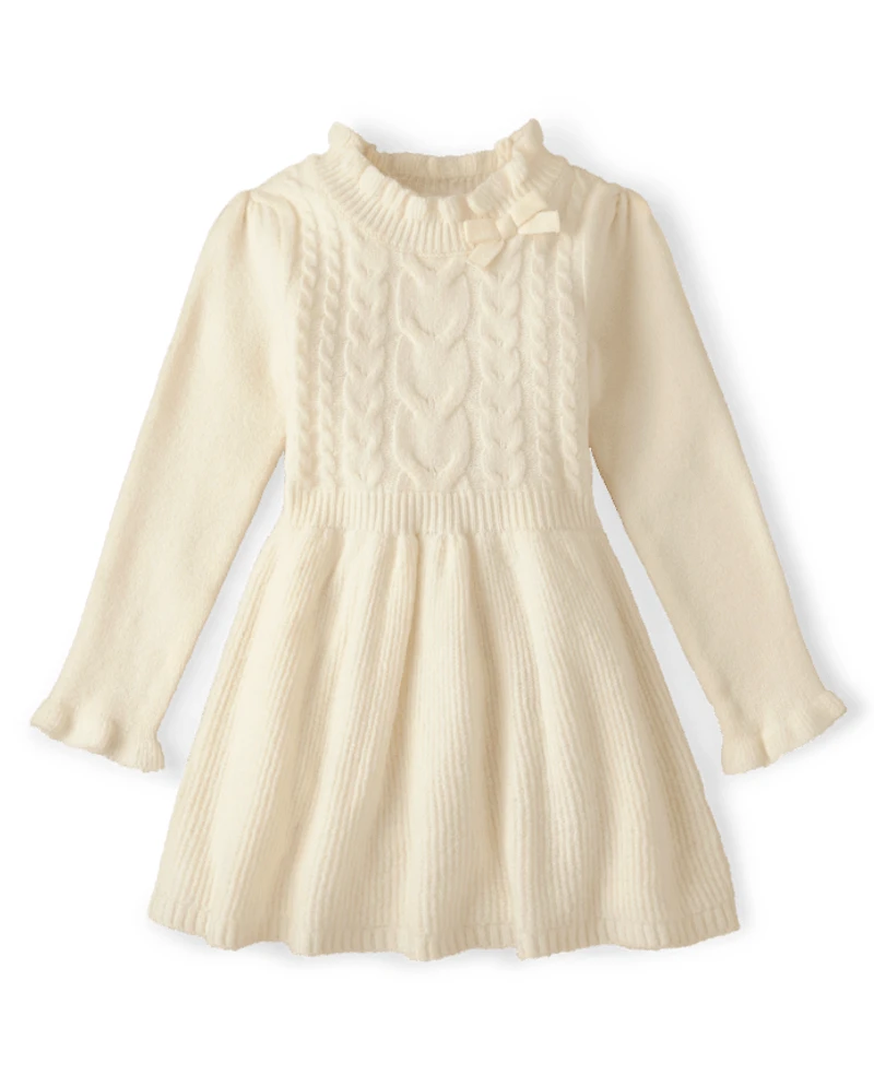 Girls Cable Knit Mock Neck Sweater Dress - Royal Christmas