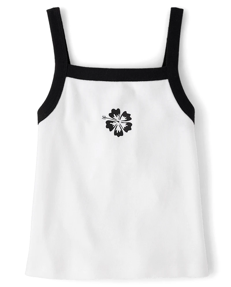Girls Colorblock Ribbed Graphic Tank Top