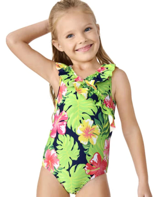 Girls Matching Family Tropical Ruffle One Piece Swimsuit - Aloha