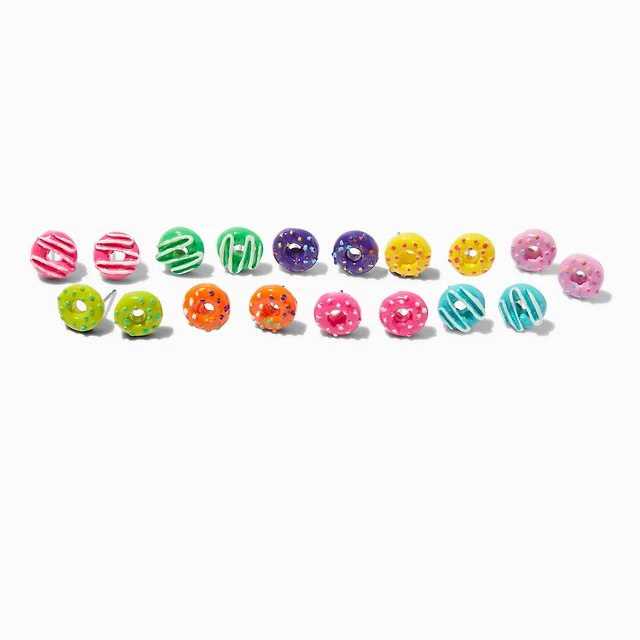Glitter Rainbow Donut Stud Earrings - 9 Pack