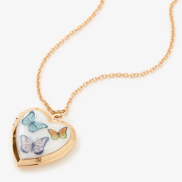 14K Yellow Gold Filled 18" Butterfly Heart Locket