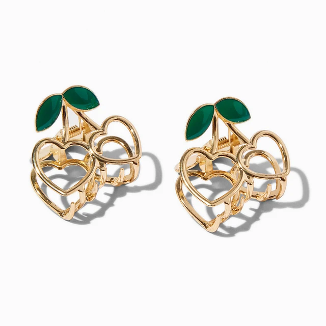 Gold Heart Cherry Hair Claws - 2 Pack