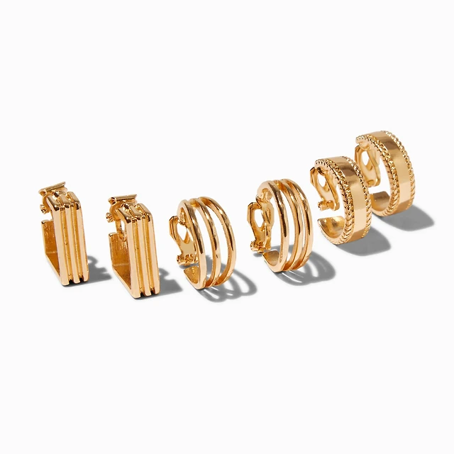 Gold-tone 20mm Hoop Clip-On Earrings - 3 Pack