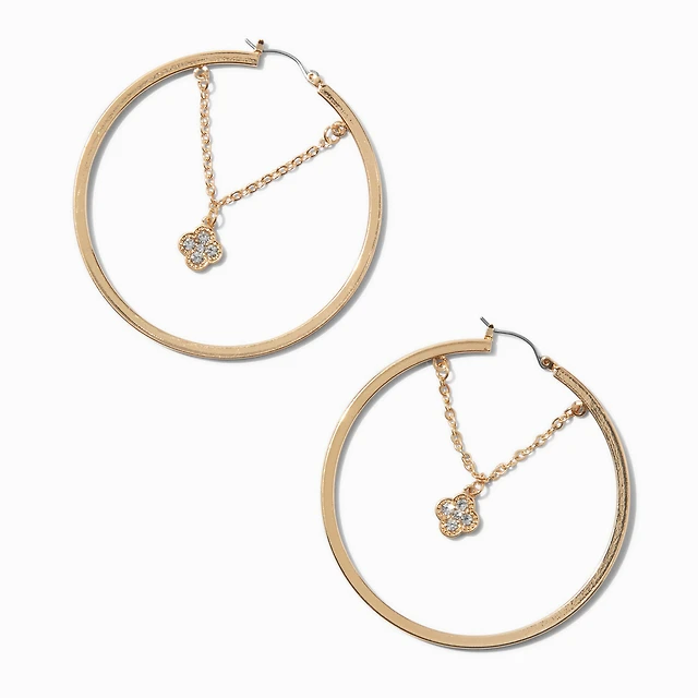 Gold-tone Crystal Clover Chain 60mm Hoop Earrings