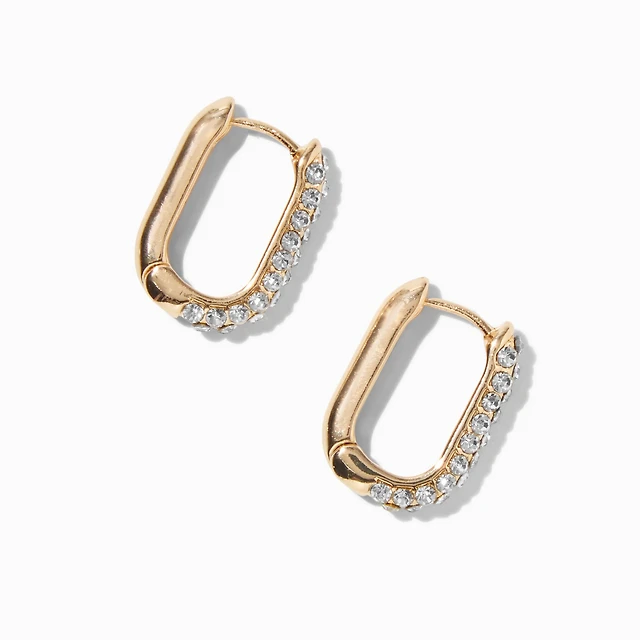 Gold-tone Crystal Pavé Oblong Clicker Hoop Earrings