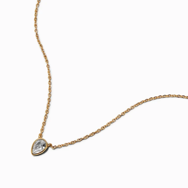 Gold-tone Cubic Zirconia Teardrop Pendant Necklace