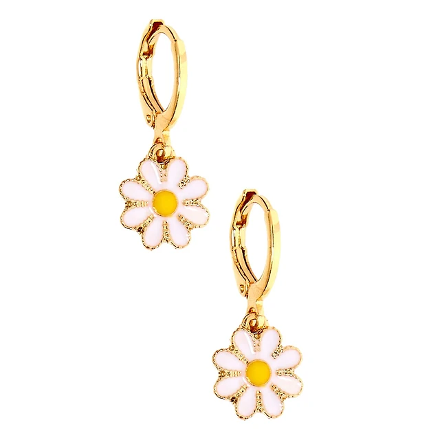 Gold-tone Daisy 10mm Huggie Hoop Earrings