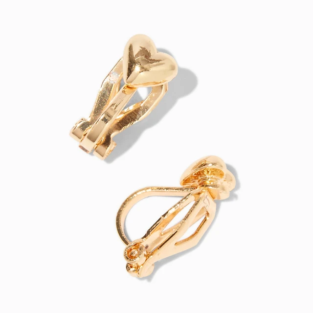 Gold-tone Heart Clip-On Stud Earrings