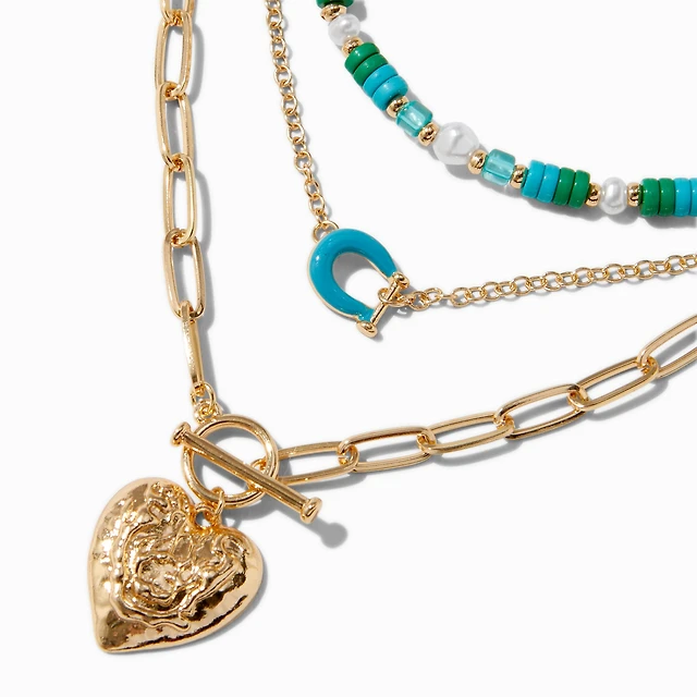 Gold-tone Heart Turquoise Beaded Multi-Strand Necklace