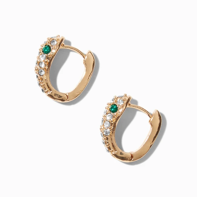 Gold-tone Pavé Snake Huggie Hoop Earrings
