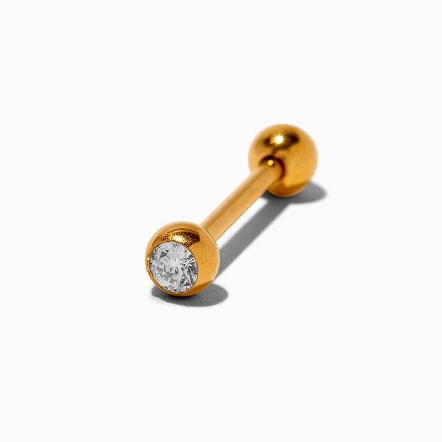 Gold-tone Titanium Cubic Zirconia 14G Tongue Barbell