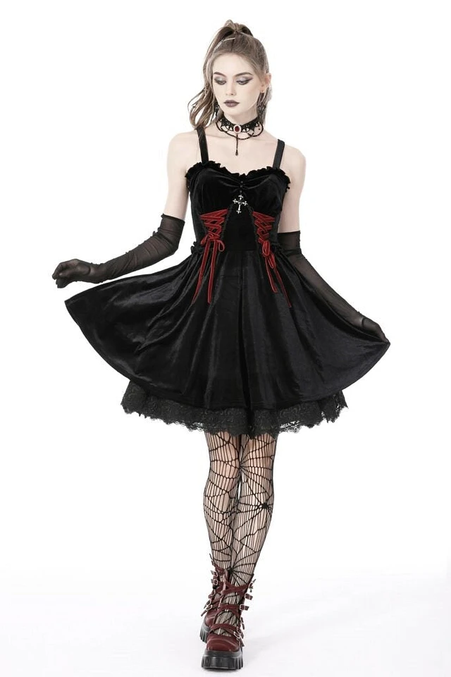 Nightfall Crushed Velvet Lace-Up Mini Dress