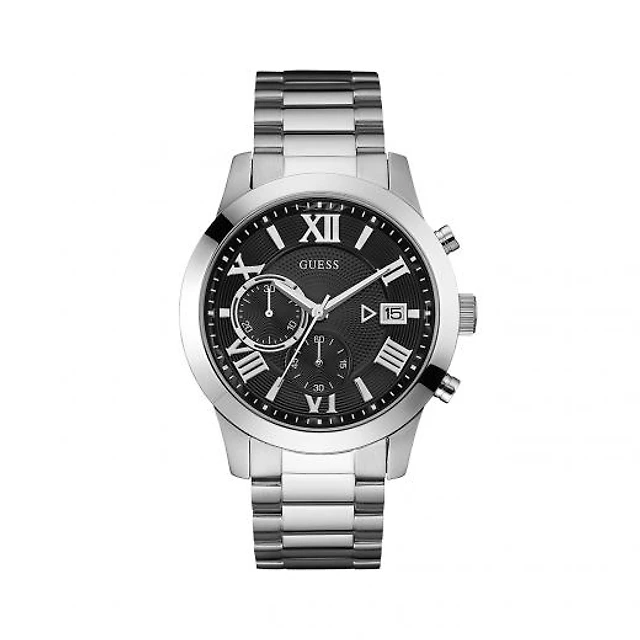 Guess Men's Silver Tone Black Dial Clyde Watch