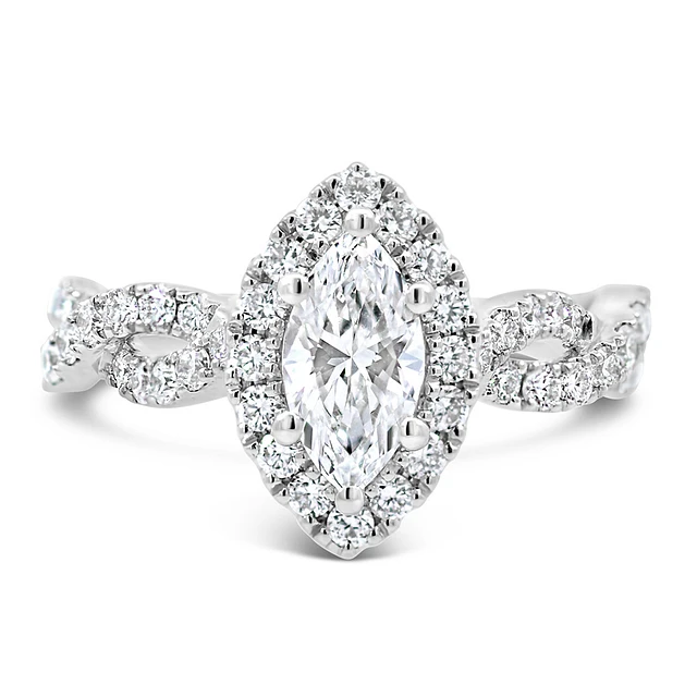 Halo Marquise Engagement Ring with 1.50 Carat TW of Lab Created Diamonds in 14kt White Gold