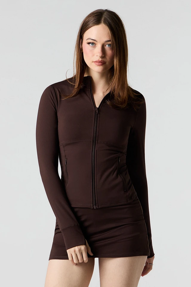 Haut en tricot côtelé à manches longues avec fermeture glissière