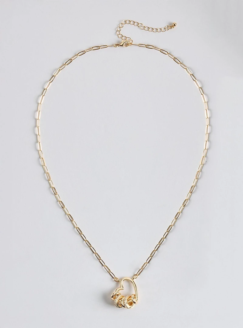 MATERIALS + CARE Man-made materials. Imported. DETAILS High shine finish. Link chain. Fixed heart pendant with additional charms.