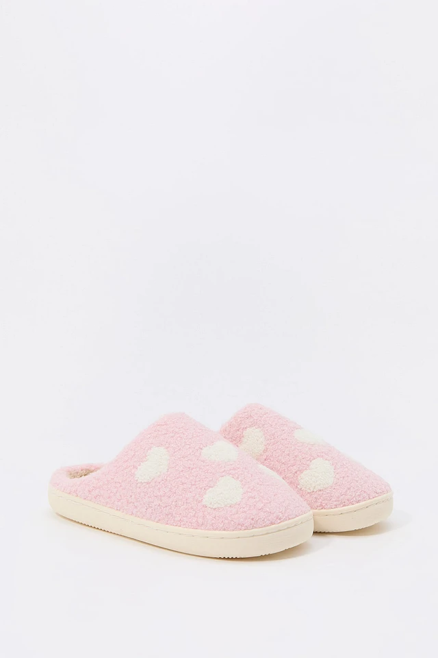 Ardene Heart Print Slippers in Grey | Size Small | Polyester
