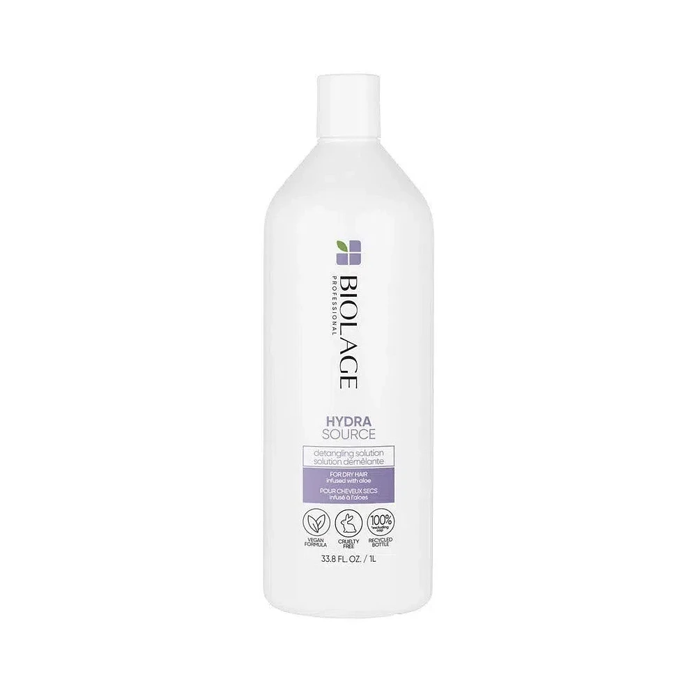 Drench dry and parched hair with Biolage Core HydraSource Detangling Solution. Formulated with Aloe Vera to nourish and moisturize, improve elasticity for reduced breakage and enhance shine for healthy hair. This Detangling Solution conditions the hair for less frizz and fly-aways, seals the cuticle to lock in moisture, detangles, and enhances shine and manageability while optimizing moisture balance for healthy-looking hair.
