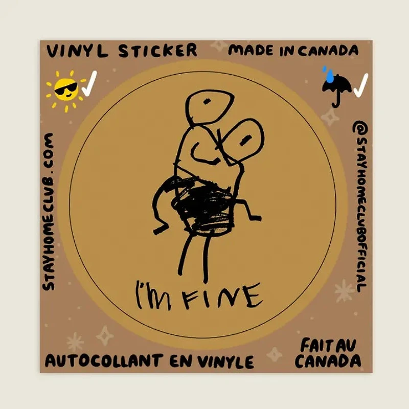 2.5" sticker * Comes as an easy to peel kiss-cut sticker on 3" x 3" bilingual (French / English) branded backing * Made of durable, waterproof, weatherproof vinyl * Appropriate for outdoor use and dishwasher safe * Designed by a 4 year old child
