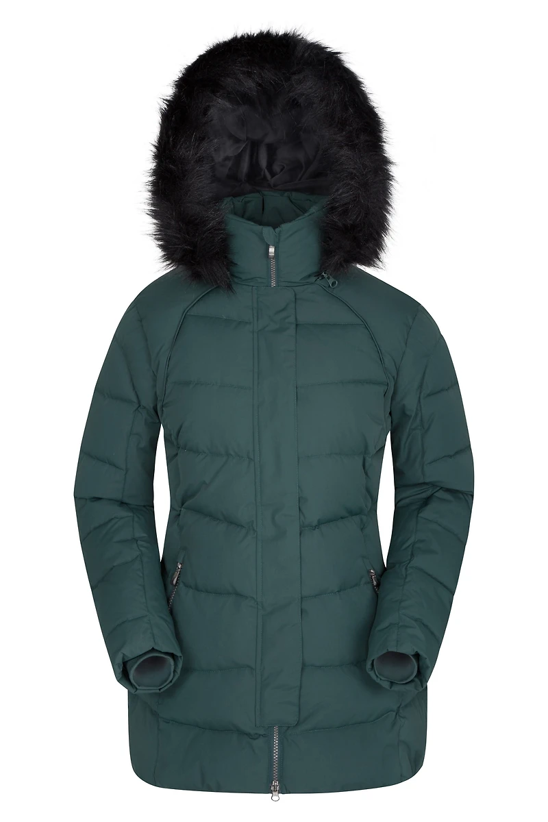 Our Isla II Women’s Long Down Jacket, crafted in a longer length, is the perfect addition to your winter wardrobe. Offering superior warmth with down fill and laboratory-tested to endure temperatures as low as -35°C. Featuring a detachable faux fur hood trim and water-resistant material, this jacket offers versatile styling options while keeping you dry and protected in wet weather. Zipped pockets keep your essentials safe and easily accessible whenever you need them!