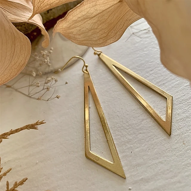 Livistona Raw Brass Palm Frond Drop Earrings Raw Brass