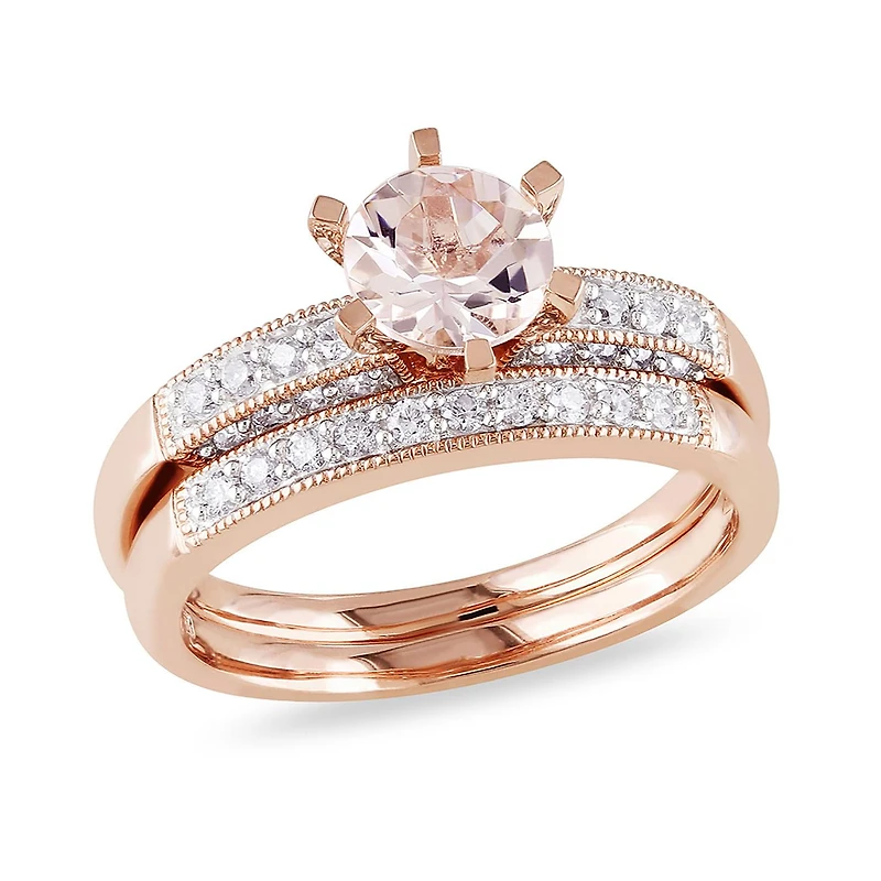 Julianna B 10K Rose Gold 0.33CTW Diamond & Morganite Bridal Set