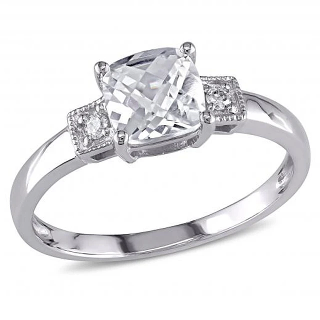 Julianna B 10K White Gold Created White Sapphire and 0.07CTW Diamond Ring
