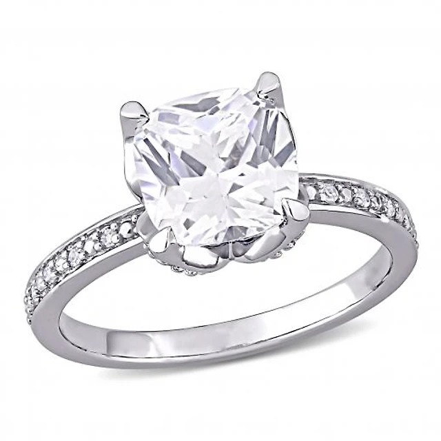 Julianna B 10K White Gold Created White Sapphire & 0.06CTW Diamond Bridal Ring